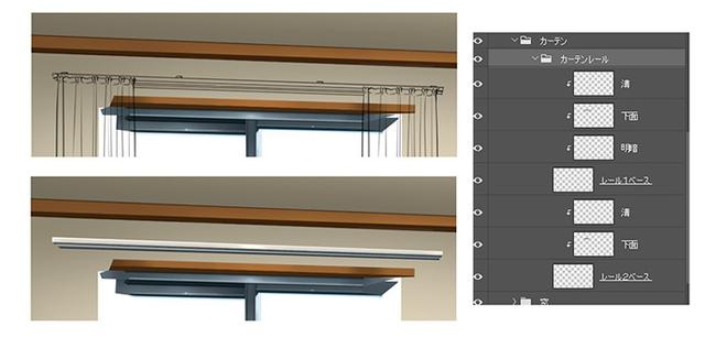 大多数窗帘导轨的结构是两个导轨前后对齐。您可以在前景中看到主要部分,因此让前景变暗,使背面变暗。