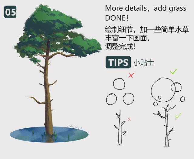那么今天灵猫课堂就在网络上收集整理了一些关于如何绘画树木的教程给大家,来自微博插画师画CG的chc的绘画技巧教程非常简单,赶紧来看看叭: