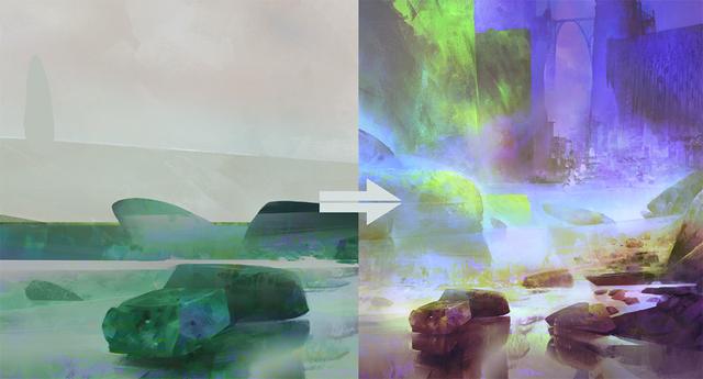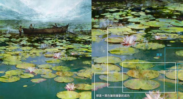 这种油画技巧与数位绘图有很深的联系。它原本被称为「thick over thin(在薄的颜料上涂抹厚的颜料)」,是与画材相关的严谨原则, 能带给绘画别有一番风味的深奥效果,那正是色彩的鲜艳度。