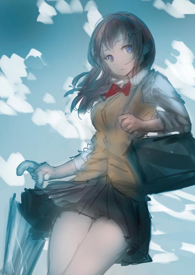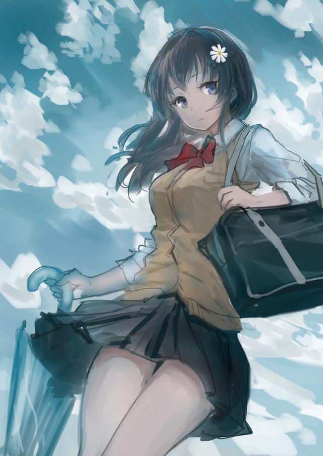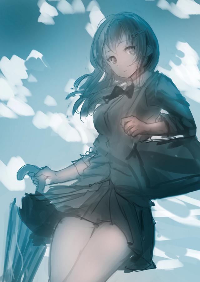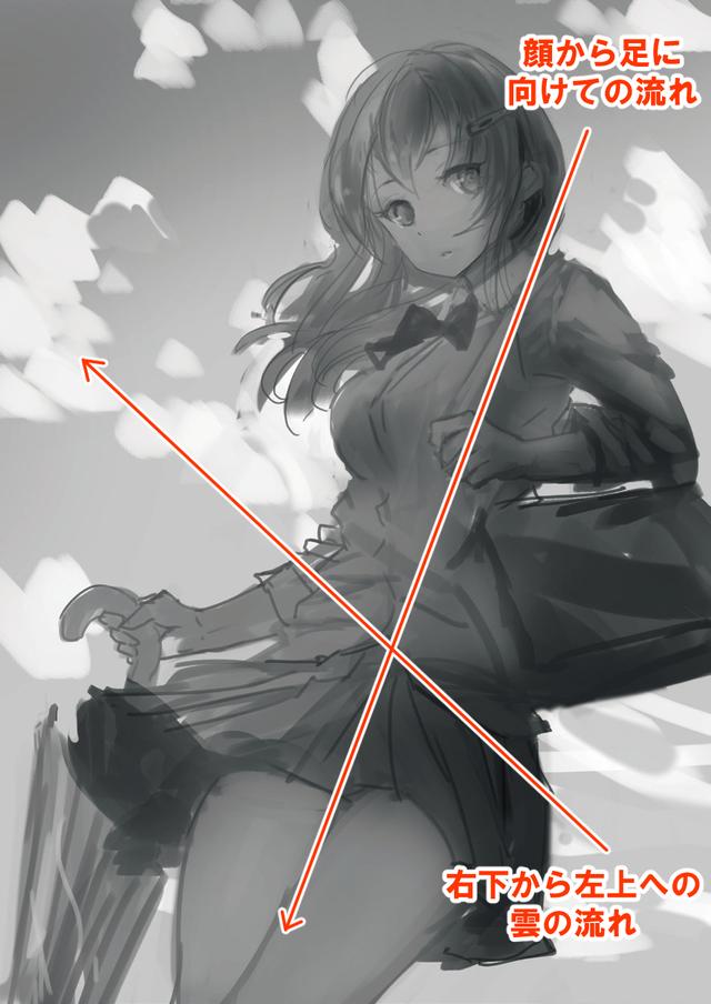 http://p3-tt.byteimg.com/large/pgc-image/778cafc90bf4429bae9a95cdf478537b?from=pc以这种方式相交的流线的效果是使视线集中在相交处,并防止整个绘画流向一个方向流动。此外,在角色后面绘制了一片明亮的云彩,以使角色的轮廓突出。
