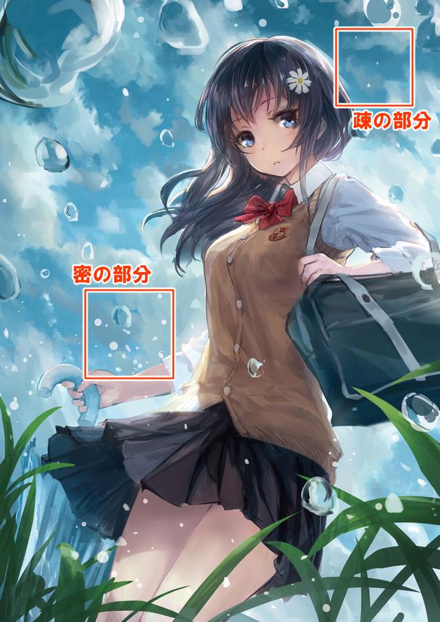 一定要在没有画太多水滴的稀疏区域和画很多水滴的密集区域增加清晰度。