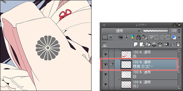 选择图案层,然后打开[Layer]面板上的[Clip at below Layer]。