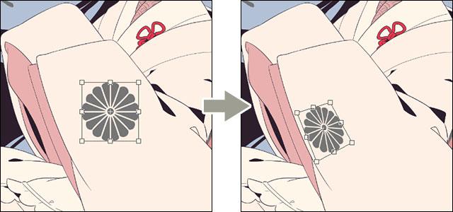 显示手柄时,将其拖动以根据衣服方向变换花样。您也可以通过将鼠标光标放在花样上并将其拖动来移动位置。