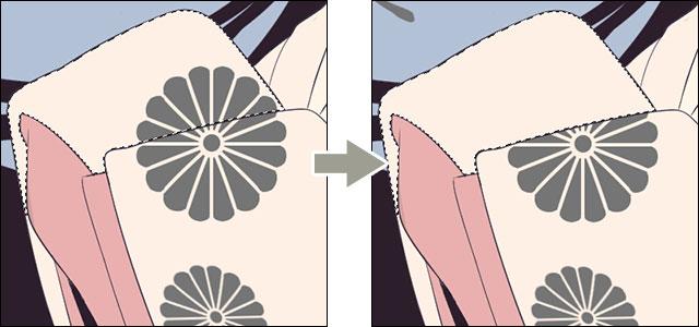 http://p6-tt.byteimg.com/large/pgc-image/e806e548187249d8b7b42bfef8631477?from=pc删除突出部分后,按[Ctrl] + [D]取消选择。在此阶段,即使图案扩展到其他颜色也没有问题。
