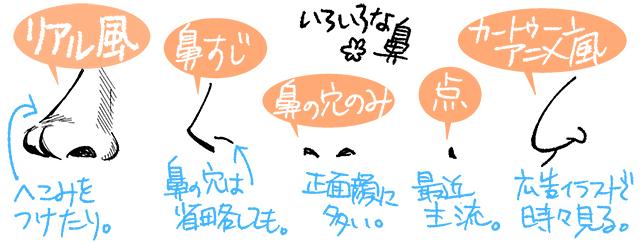 此外,绘制逼真的肖像的插画师甚至会在鼻子的阴影和鼻子上的凹痕中绘制。另一方面,在追求可爱的“萌-e”中,鼻子逐渐被省略,并且似乎有很多“点”。