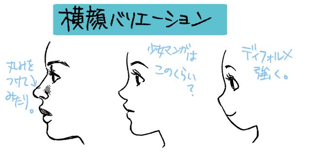 有各种各样的变体,例如既画鼻梁和鼻腔的人,只画鼻梁的人,只画鼻腔的人和只画“点”的人道歉。长长的鼻梁看起来很成熟,因此似乎经常在青年杂志等中绘制。