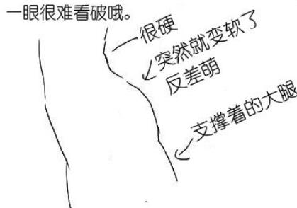 http://p6-tt.byteimg.com/large/pgc-image/69f43b412186415d9571158f329b0518?from=pc我自己瞎分析了一下(不知道在医学上是怎样的),之所以比胸要硬,是因为大面积连结于大腿下方的缘故吧。因此,基本就跟胸一样,但是要注意连结部分的面积以及下垂的方向。