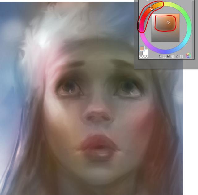 但在刚开始涂抹的时候,我只会使用下图狭窄红框范围内的颜色。