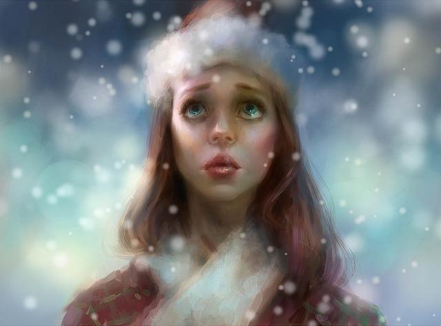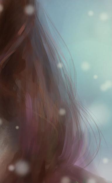 在重复涂抹颜色之后,雪的部分变得有点模糊。