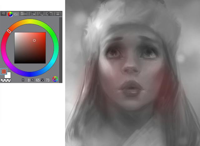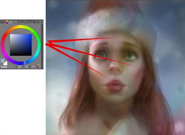 http://p1-tt.byteimg.com/large/pgc-image/a414e155f86745f585ddf511b52ce49b?from=pc图30.以轻柔的笔压上色,就能帮皮肤添加冷色,同时让画布上的色调看来协调不突兀