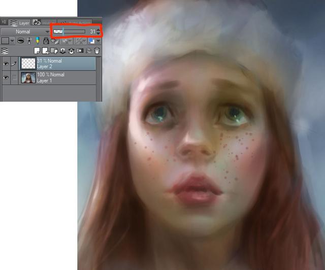 可以像绘制雀斑时那样,调整图层的不透明度并用橡皮擦清理多余的描绘范围。