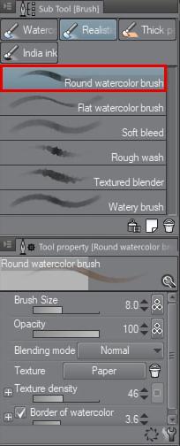 下图是我这次绘制过程中比较常使用的[不透明水彩]笔刷设定。