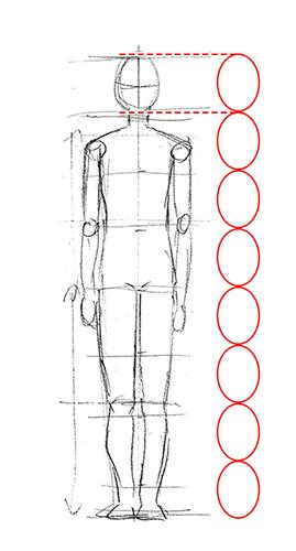 头和身体就是头的数量。从头顶到下巴尖的长度为1、2、3、4、5、6、7、8,脚的长度为8个头和身体。