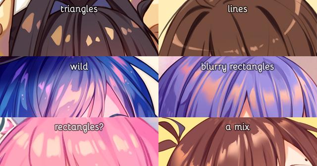 动漫中的头发和眼睛通常用于表达情感和角色的性格,因此与现实生活相比,它们通常具有更多的细节。但这很吸引人,因此没有任何复杂的规则!让您的手流动,并练习您的创造力。看看您最喜欢的动漫图纸。头发的感觉如何?