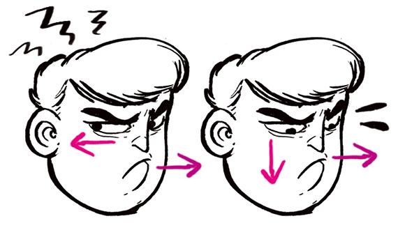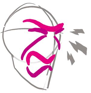 对于愤怒,首先要移动的特征是眉毛和上唇。