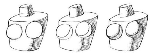 如图中的几何体所示,胸部多数类似于球体,因此可按照绘制球体明暗关系的方法将胸部的明暗关系绘制出来。绘制胸部的明暗关系时需根据整体明暗的位置提示来确定胸部的暗部面积。