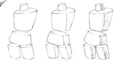 http://p6-tt.byteimg.com/large/pgc-image/5358ee4696524df78dae4d2c7538ffe4?from=pc绘制人体时,可先将人体简化为几个圆柱体的组合。圆柱体的立体关系相对比较好掌握,如图中所示,先在圆柱体上根据光源的方向画出明暗交界线。