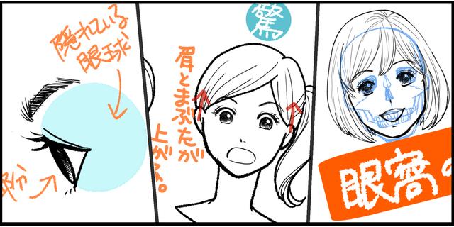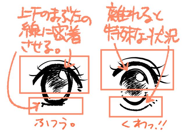例如,绘制通常被隐藏的白眼部分使其成为“惊讶的表情”,而比平常隐藏更多的黑眼使其成为“昏昏欲睡的眼睛”。