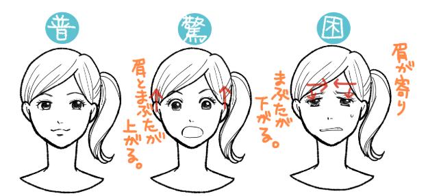那些不习惯绘制漫画和插图的人试图在其绘制的“文字”中仅用眉毛做出面部表情,但这不足以实现生动的面部表情。