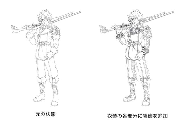 首先是增加图纸量。金属的反射细节和布上的皱纹是很容易添加细微细节的地方。如果比较一下,您会发现它变得更加豪华。