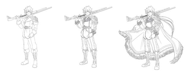 您可以使用“提示2.使服装华丽”和“提示3.增加填补空白的元素和图案”制作三步演变插图,但是在游戏插图中,进步(较高的稀有性)在某些情况下,可能会以插图为华丽进行绘制。还有一种技术可以根据进化和稀有性准备用于绘画的空间。