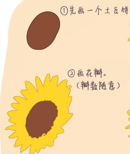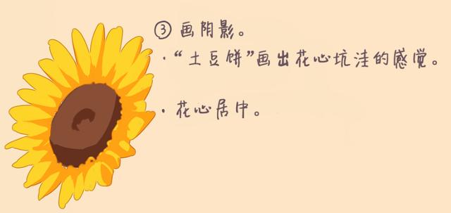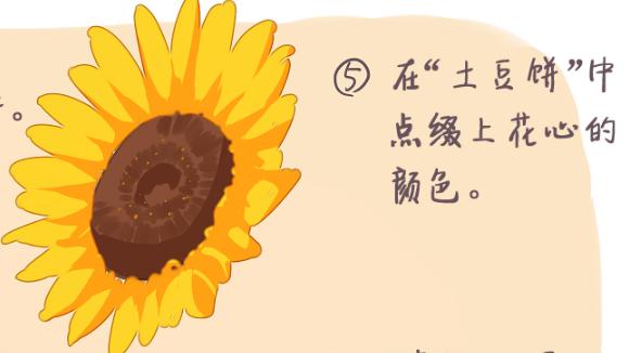 土豆饼”画出花心坑洼的感觉。花心居中。
