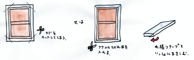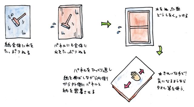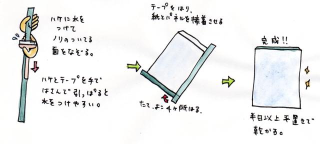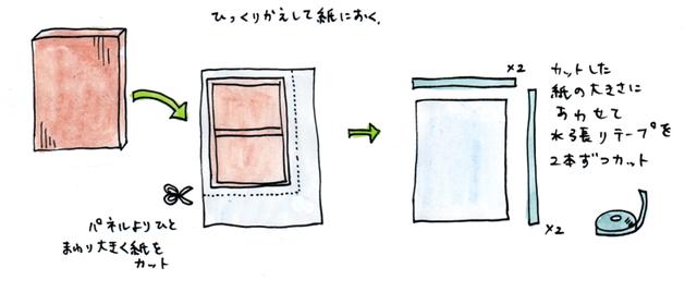 接下来,给注水胶带的粘合表面浇水以固定面板和纸张。