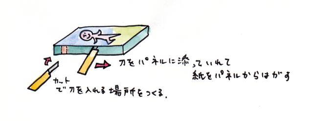然后,当您剥离纸张时,让我们剥离面板边缘上残留的所有胶带。