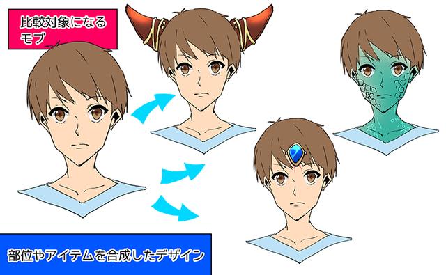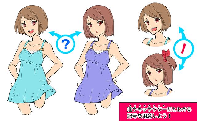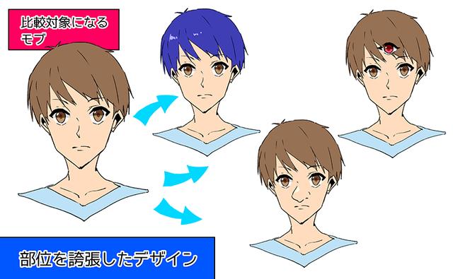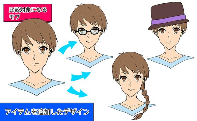 传达差异的设计是“准备澄清与其他角色的设置差异的设计”,例如眼镜和发饰。