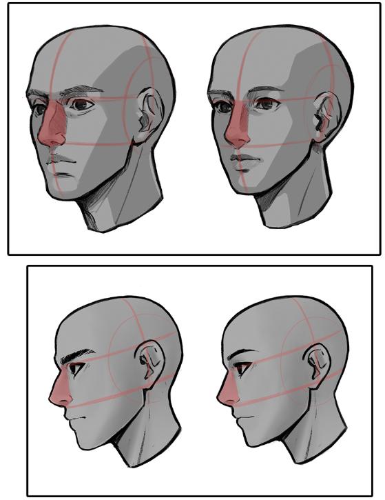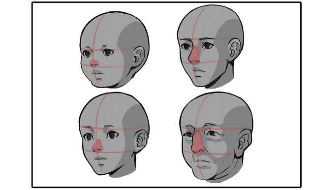 一旦完全了解了鼻子的基本结构,就着重于如何为每个字符使用正确的鼻子类型。使您可以研究和识别各种个人特征,这些特征可以识别字符之间的年龄或性别差异。