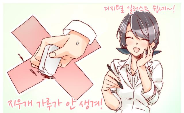 特别是初学者会一次又一次地画图,但是橡皮擦不可能擦除太多,从而导致纸上的棉绒或橡皮擦粉弄脏桌面。优点是,当线条绘制不正确或绘制的颜色超出笔线时,可以立即进行校正。绘制笔线后,如果您想绘制眨眼的表情,则可以立即再次绘制。如果是数字插图,则以后更改其组成相对容易。