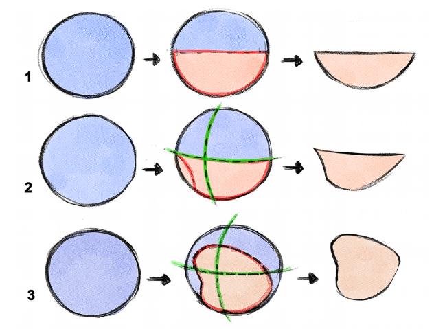 在此示例中,您可以以最简单的形式看到嘴巴,而没有任何透视图(图1)。您可以通过¾透视图看到想像的方式(图2和图3)。