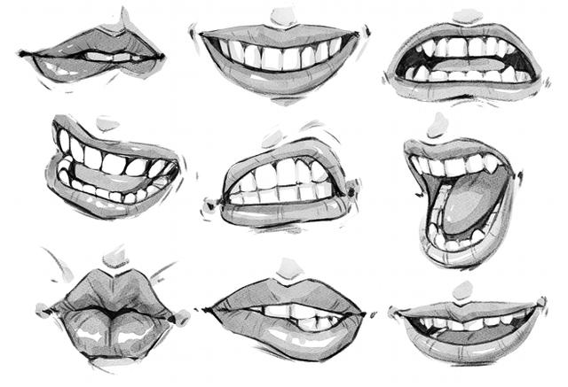 嘴唇可以帮助传达各种表情和情感,包括挑战,恐惧和迷人。下图显示了富有表现力的嘴和嘴唇的示例。