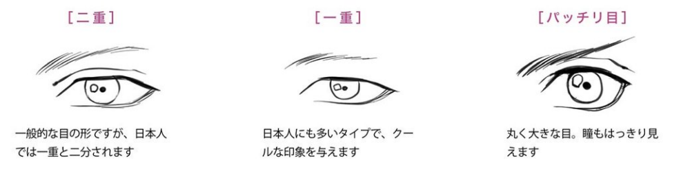作为脸的主要部分的眼睛、鼻子、嘴巴,根据人的不同可以看到各种各样的特征。让我们来看看每个零件的特征。