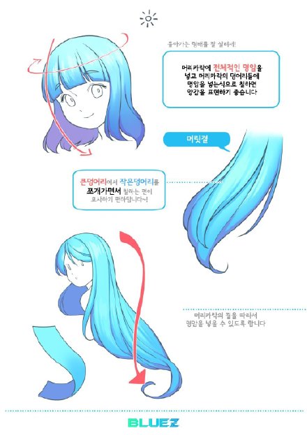 考虑到恐惧的头发块和不规则的大小和流动的方向等,进行绘图