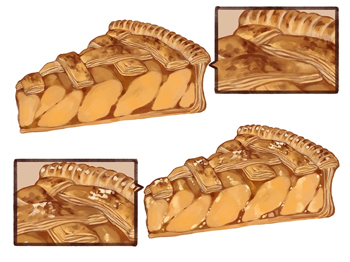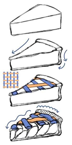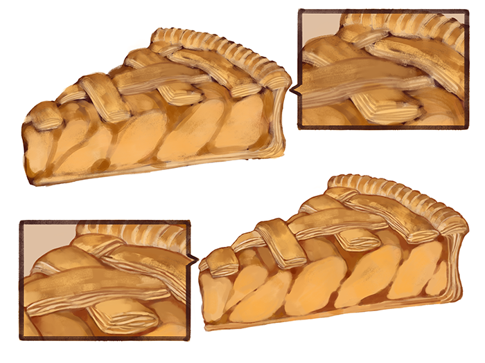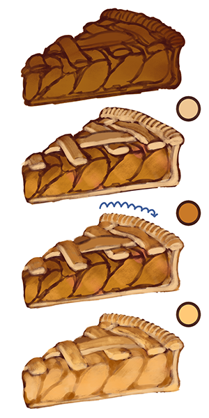 首先,在面团的横截面上以浅色绘制作为派特征的“层”。