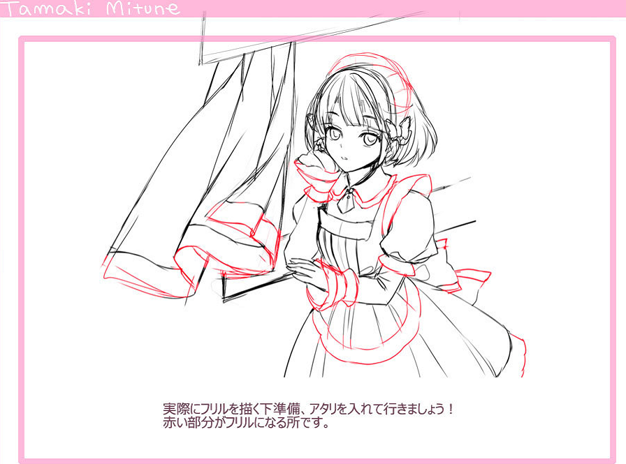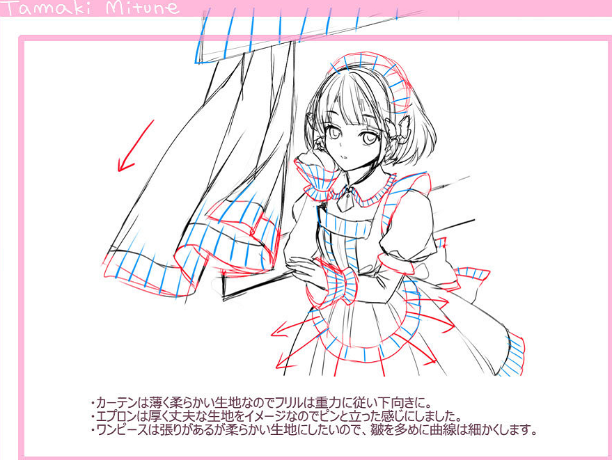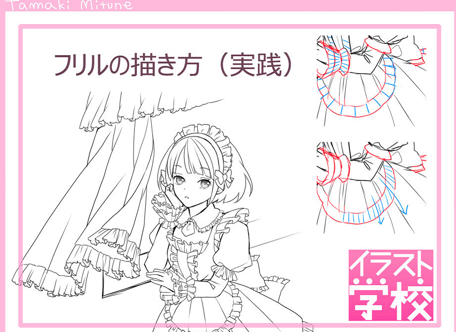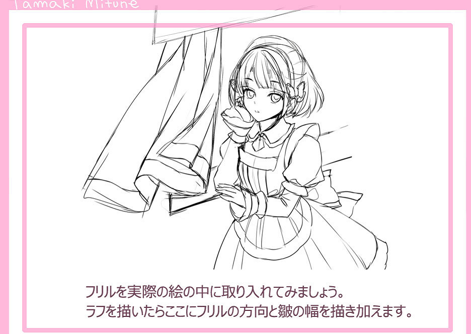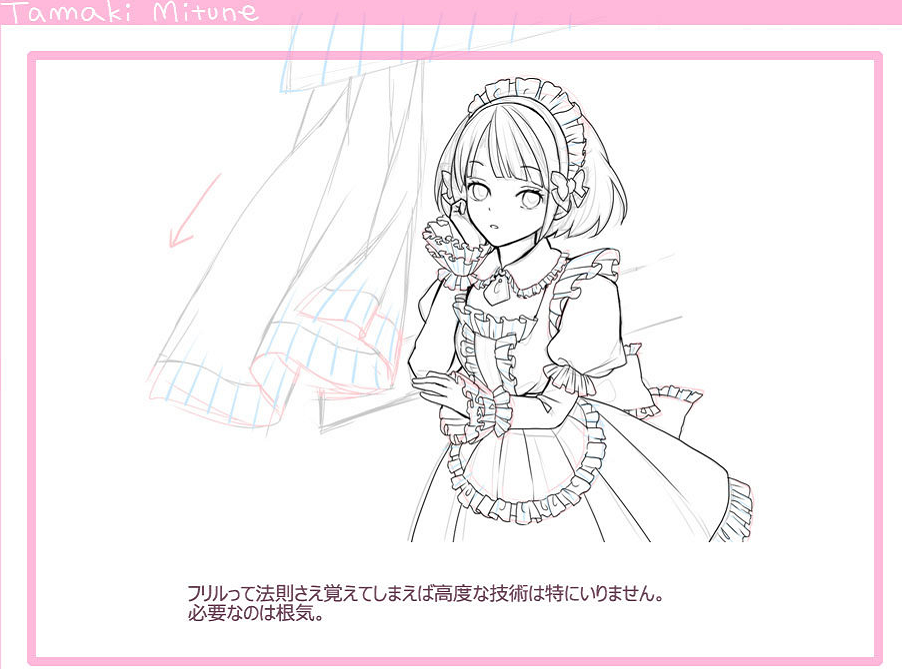 女仆装必备!裙子花边怎么画?非常简单的零基础女生衣服褶皱画法