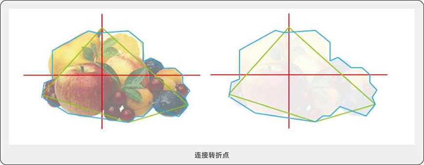 https://p3-tt.byteimg.com/origin/pgc-image/0262b110c3f34fcaaddb2e690ae8962e?from=pc2、通过上面的辅助线,找到更多的点(蓝色线),这些点是物体轮廓的点,也是转折点,将这些点连接起来。