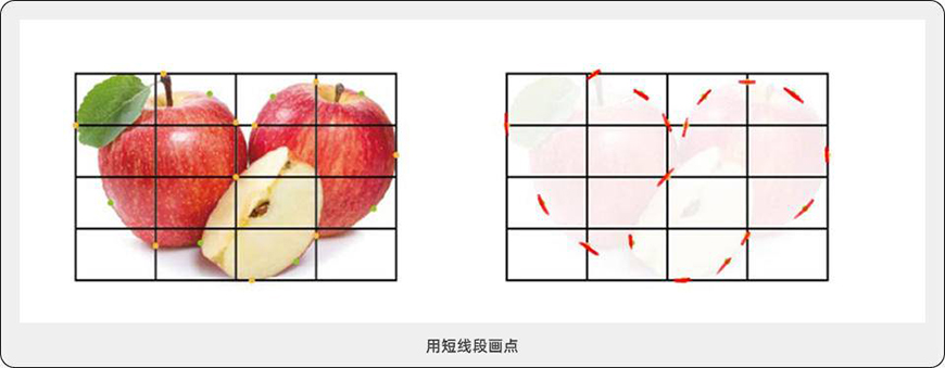 4、根据物体的转折,用短线段画点,注意这个时候线段也有其自身的方向。