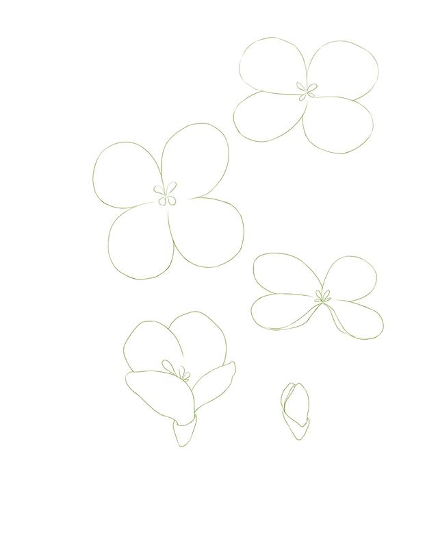 这里花的画法跟人物是一样的步骤,但是画这种花很多的小植物,不用每一朵都画出来,可以挑选四到五个不同角度的花单独画出来,然后后期再多复制一些,进行组合摆放。