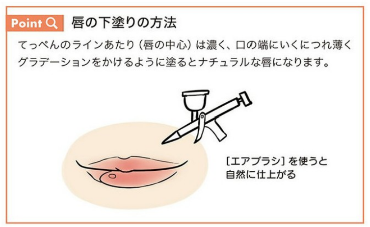 唇线附近(嘴唇的中心)比较浓,到了唇边涂上淡渐变的话,嘴唇就会变得自然。