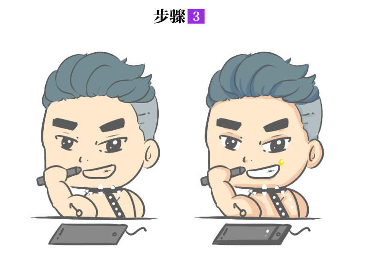 第一步铺上固有色,仔细将颜色填满;第二步给人物颜色填上简单的阴影和高光,使人物细节更丰富。