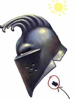 我用标准的粉笔刷加上不透明度控制(这一个用来遮住头盔。这让表面看起来像锤一样