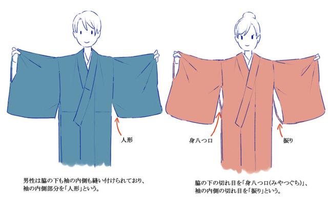 腋下的缝隙叫做“身八口”,袖子内侧的缝隙叫做“振”。