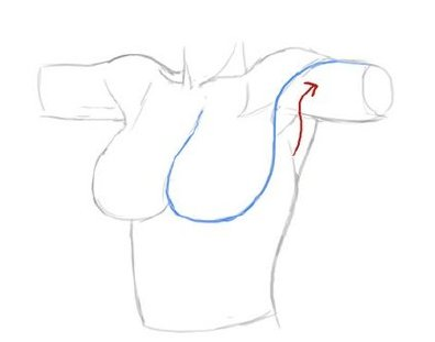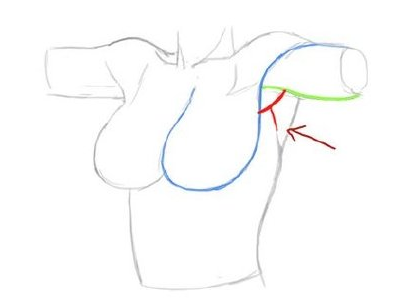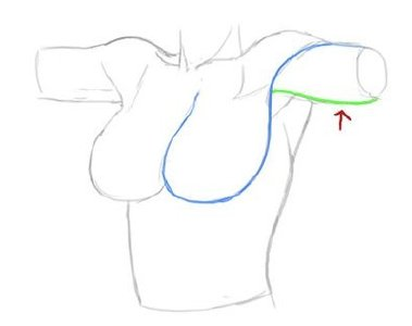 3.画手臂在胸部和手臂之间的肌肉,此形状可能看起来与手腕相似。