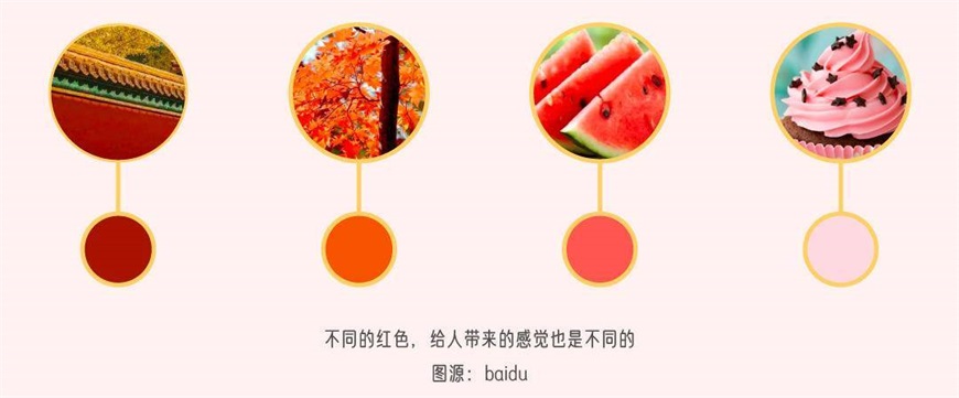 例如,同样是红色,当它的饱和度与明度过高时,我们会联想到国旗、鲜血等等,油然生出敬意感,而降低饱和度之后得到的粉色,却能唤醒我们深藏的少女心,再降低明度,则会与深宫红墙类似,呈现出复古幽静的感觉。