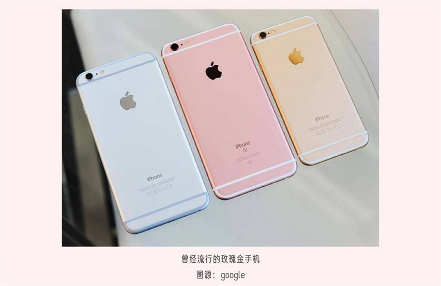 https://p3-tt.byteimg.com/origin/pgc-image/286564a0f60e44938c14c680e9527c86?from=pc近现代依旧有不少价格影响审美的例子。例如早前iPhone 6s的玫瑰金,由于手机价格的昂贵,导致这个颜色也变得高级,随着产品的更新迭代,它也早远离了流行趋势,不再吸引眼球。