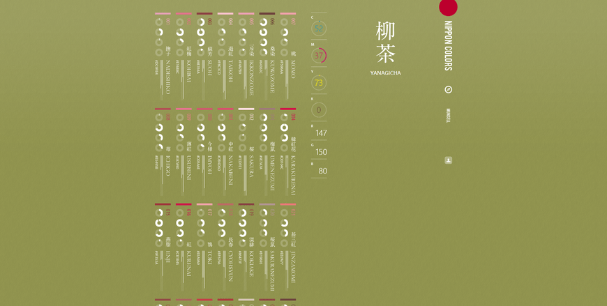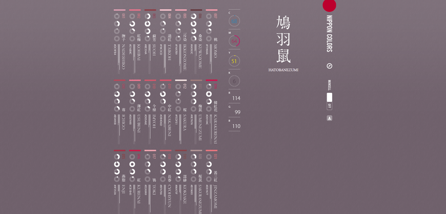https://p3-tt.byteimg.com/origin/pgc-image/4e31ce793af34ca28b0400e3f3c8eeea?from=pc这个超高颜值的网站,我不允许还有人不知道!NIPPON COLORS 收录了250种日本传统颜色,每次打开它的时候,都会自动显示一张不同的颜色图,字体设计细腻精致,右边还标注了RGB与CMYK的色值,可以说非常贴心了。