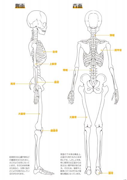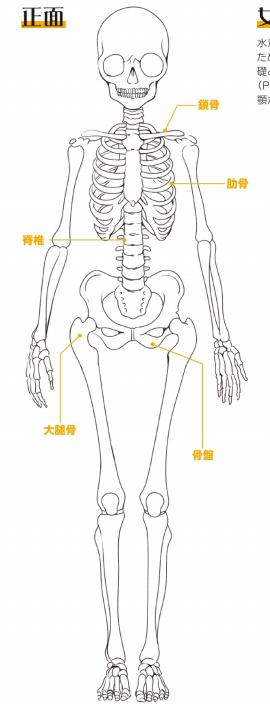 但是上半身,特别是肩周围有从正面看不见的肩胛骨。因此,锁骨和上臂骨的连接等构造复杂。