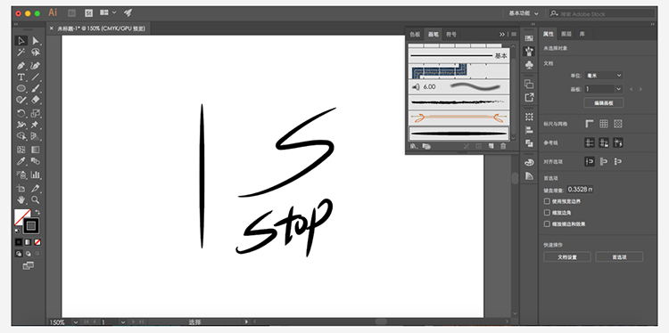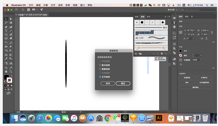 如果你觉得ai自带的笔刷不是很符合你心目中的感觉,别灰心那我们就自制笔刷,有一些同学想要的两端细中间粗的线条下面我来展示下